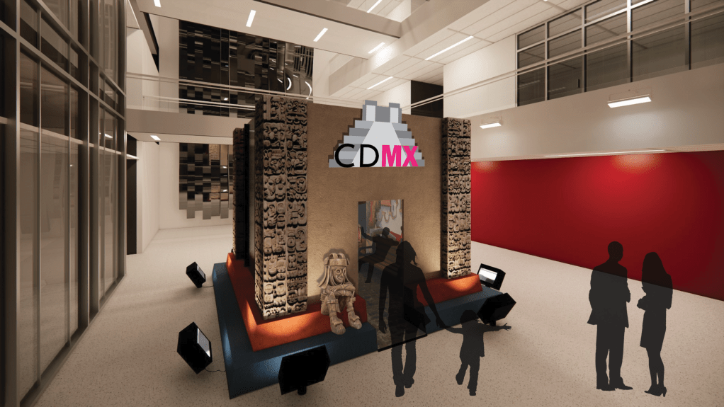 Inspired by the rich architecture of the Aztec civilization that once stood in Mexico City, the apex temple represents a connection to the ancient past and the deities that ensure human survival. The design of the kiosk will pull cues from this symbolic form through featuring a false stepped entryway that imitates the grand procession up to the temple. The materiality will convey the sense of place through lightweight finishes that mimic traditional stonework and will be highlighted through dramatic lighting effects. Careful consideration is given to the movement of people through space by establishing a visual hierarchy that mirrors the passage of time. The façade of the kiosk will represent the city’s historic monumental relics, transitioning into the modern-day Mexico City as visitors step into the temple.