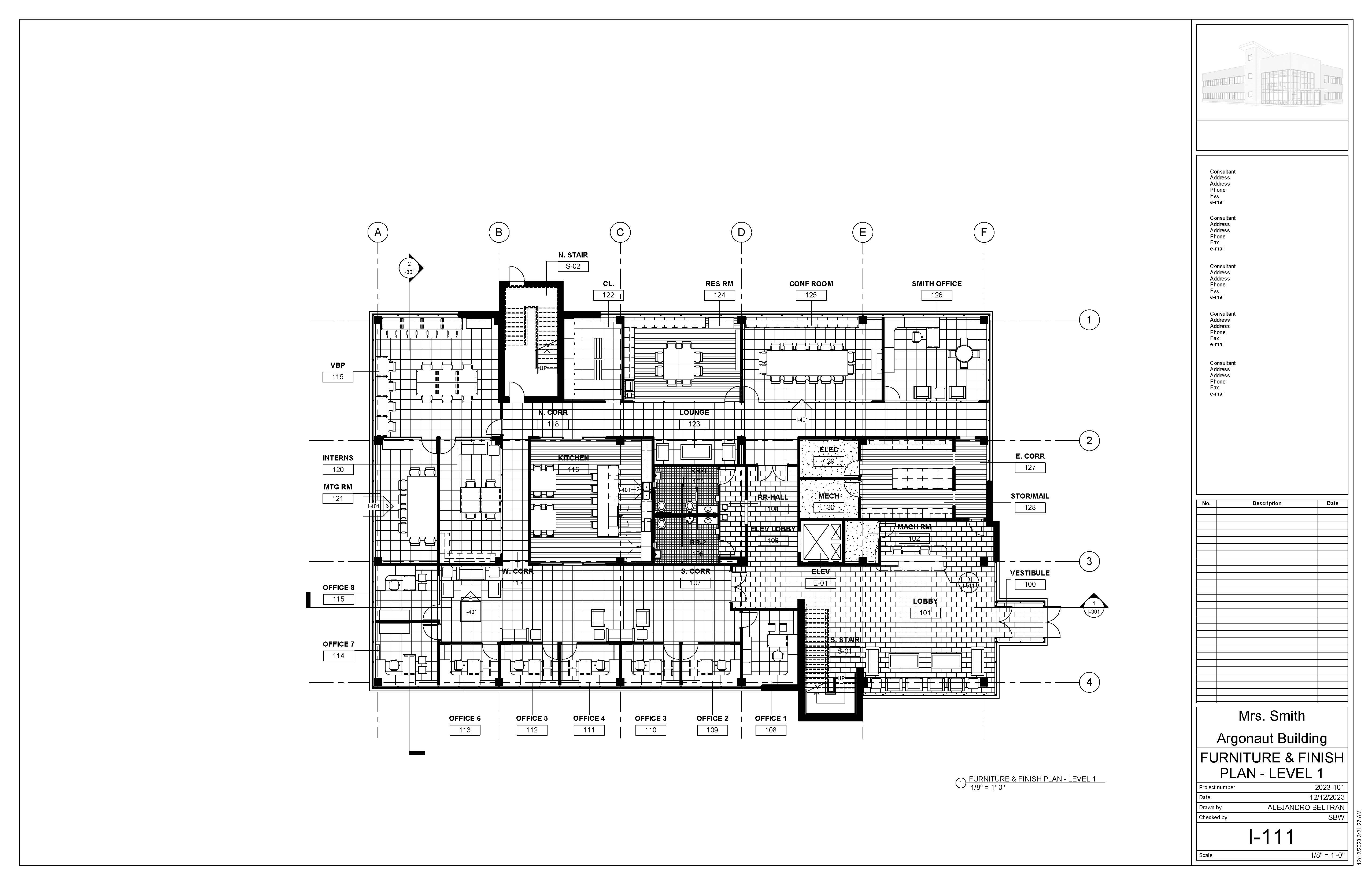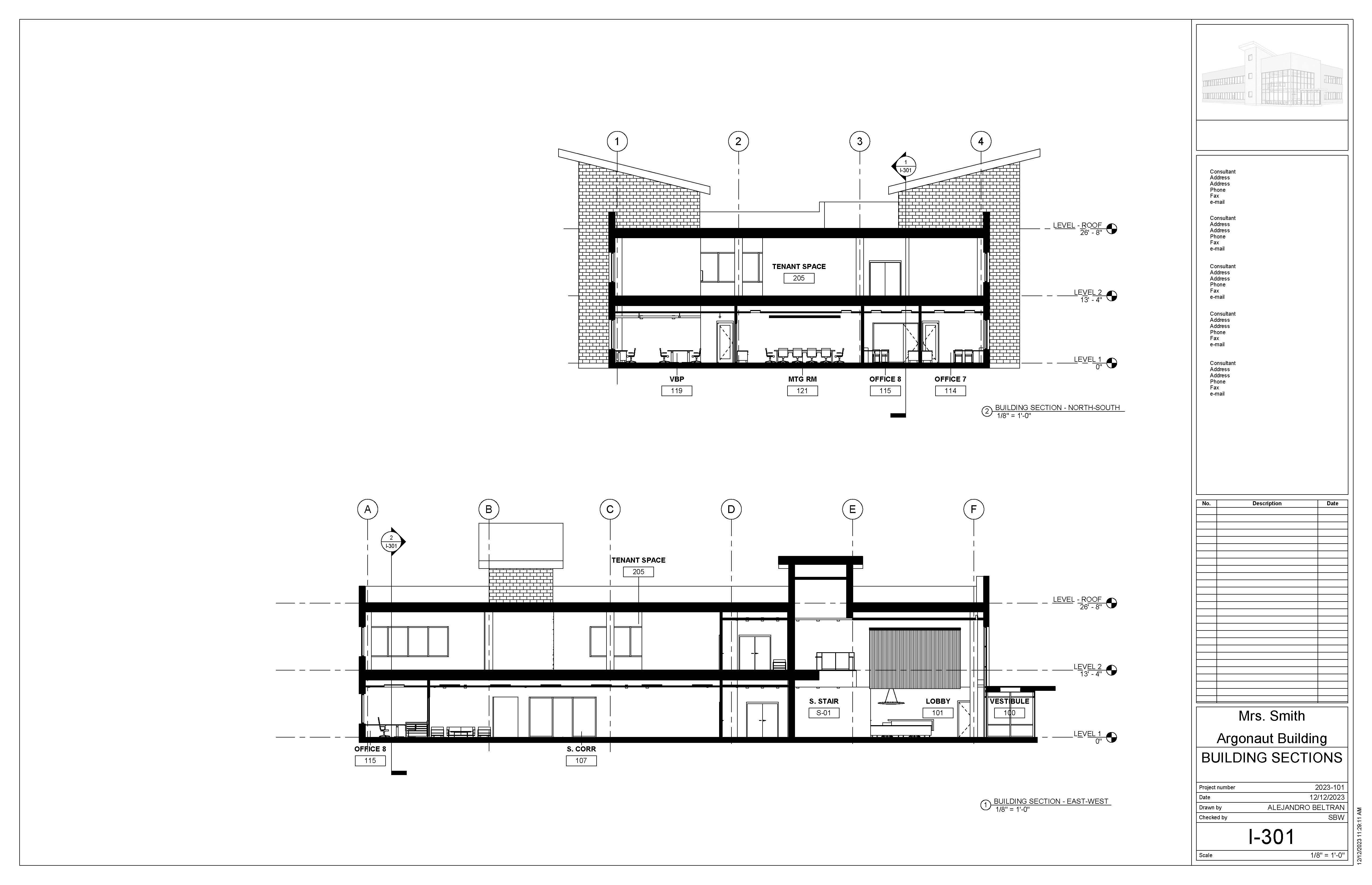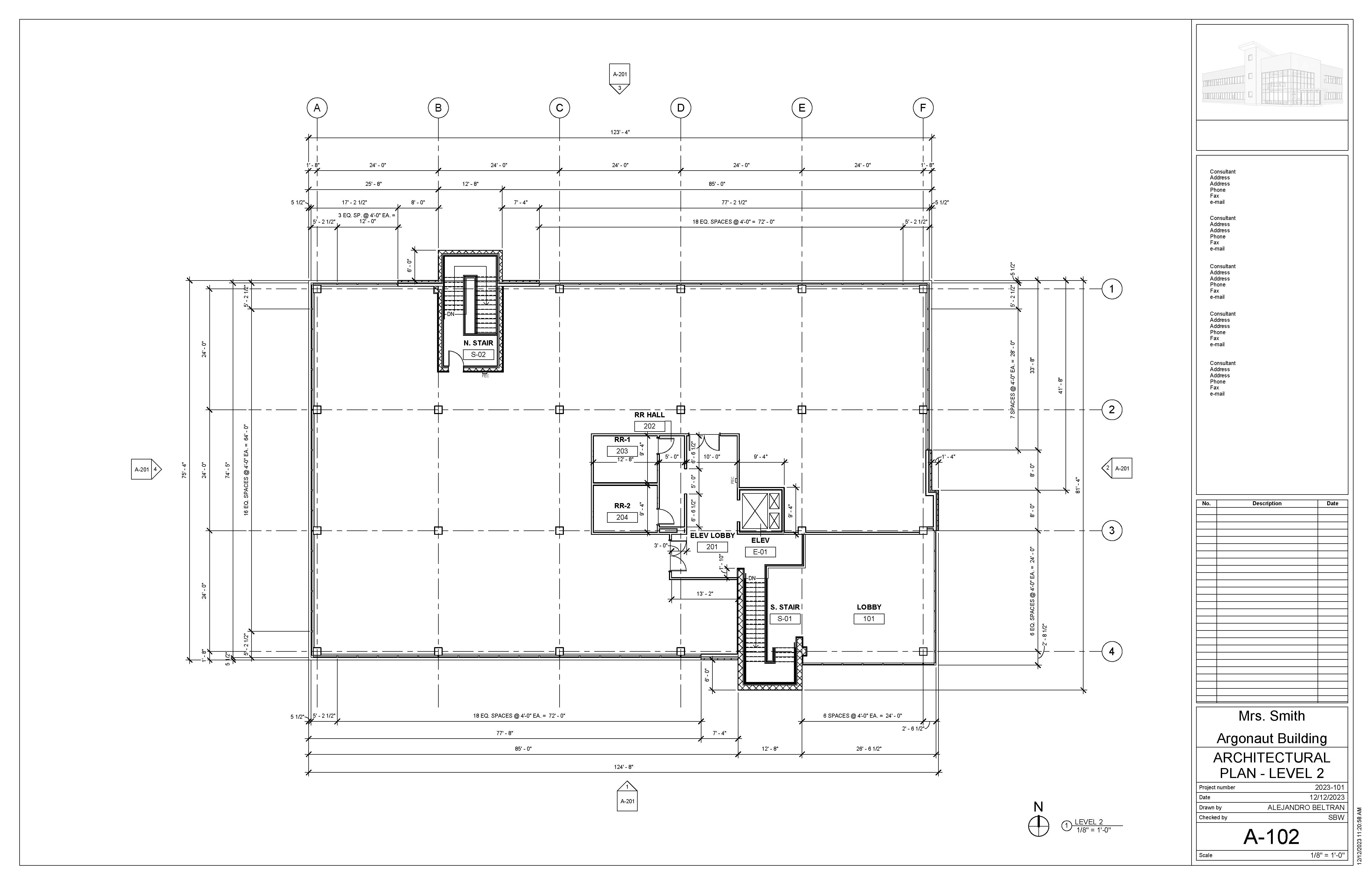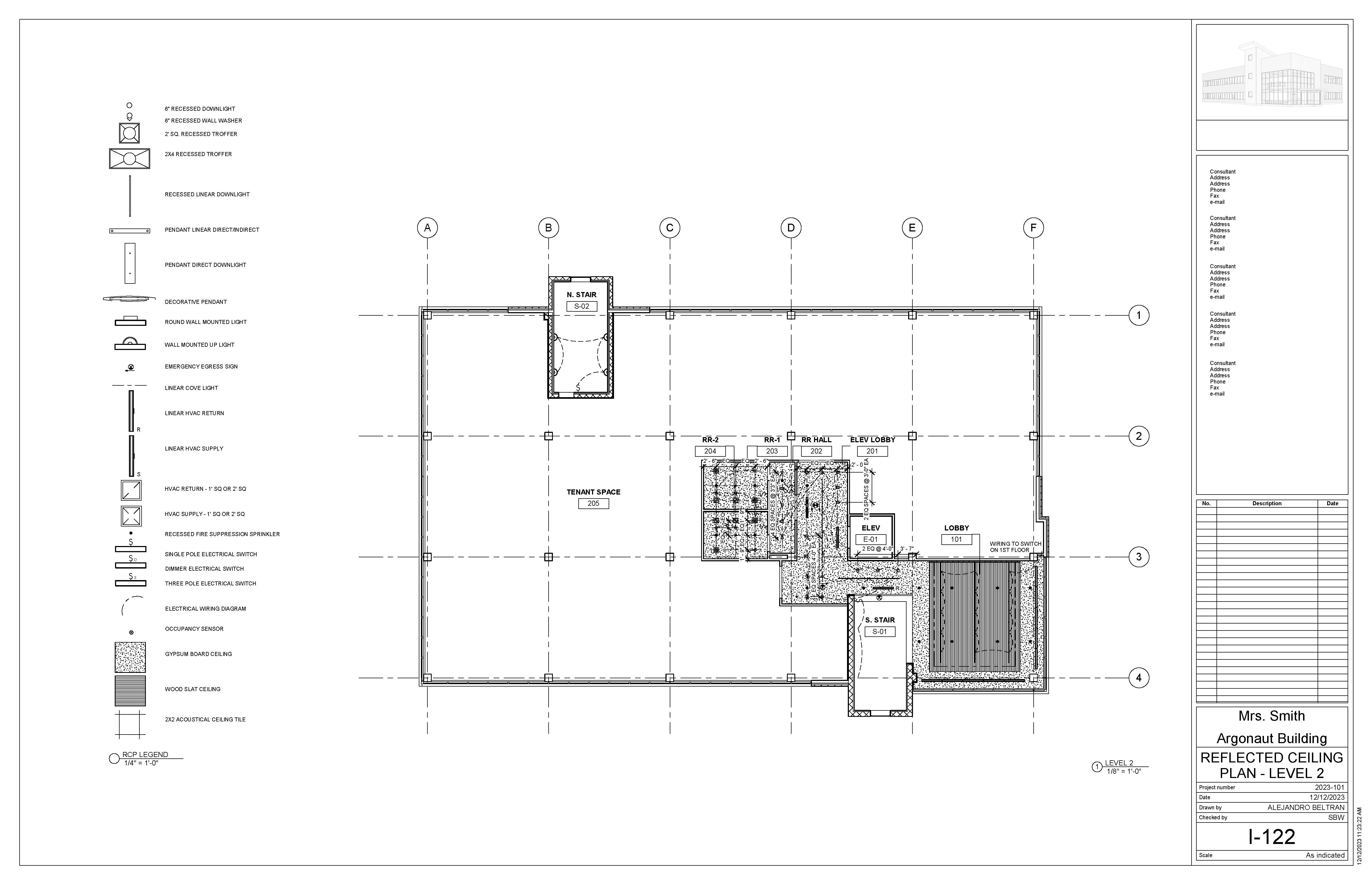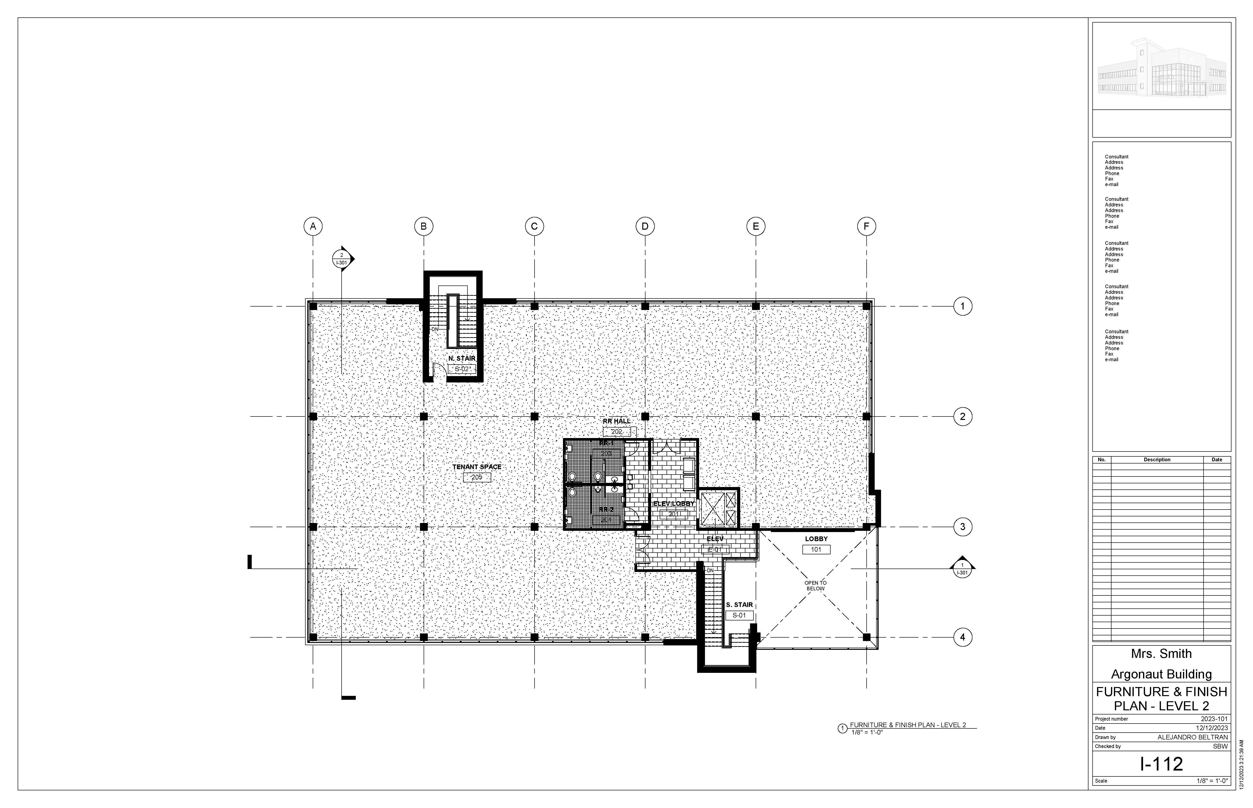 The Argonaut Building project is an exercise that develops students’ skills and command over construction documentation and building modeling. This roughly 17,000 sqft space is an interior build-out that features a large office space and shared lobby entrance on the first floor, with an additional tenant space on the second level. I was responsible for modeling the core & shell of the building, space planning required program elements for the office, as well as drafting a variety of technical plans.