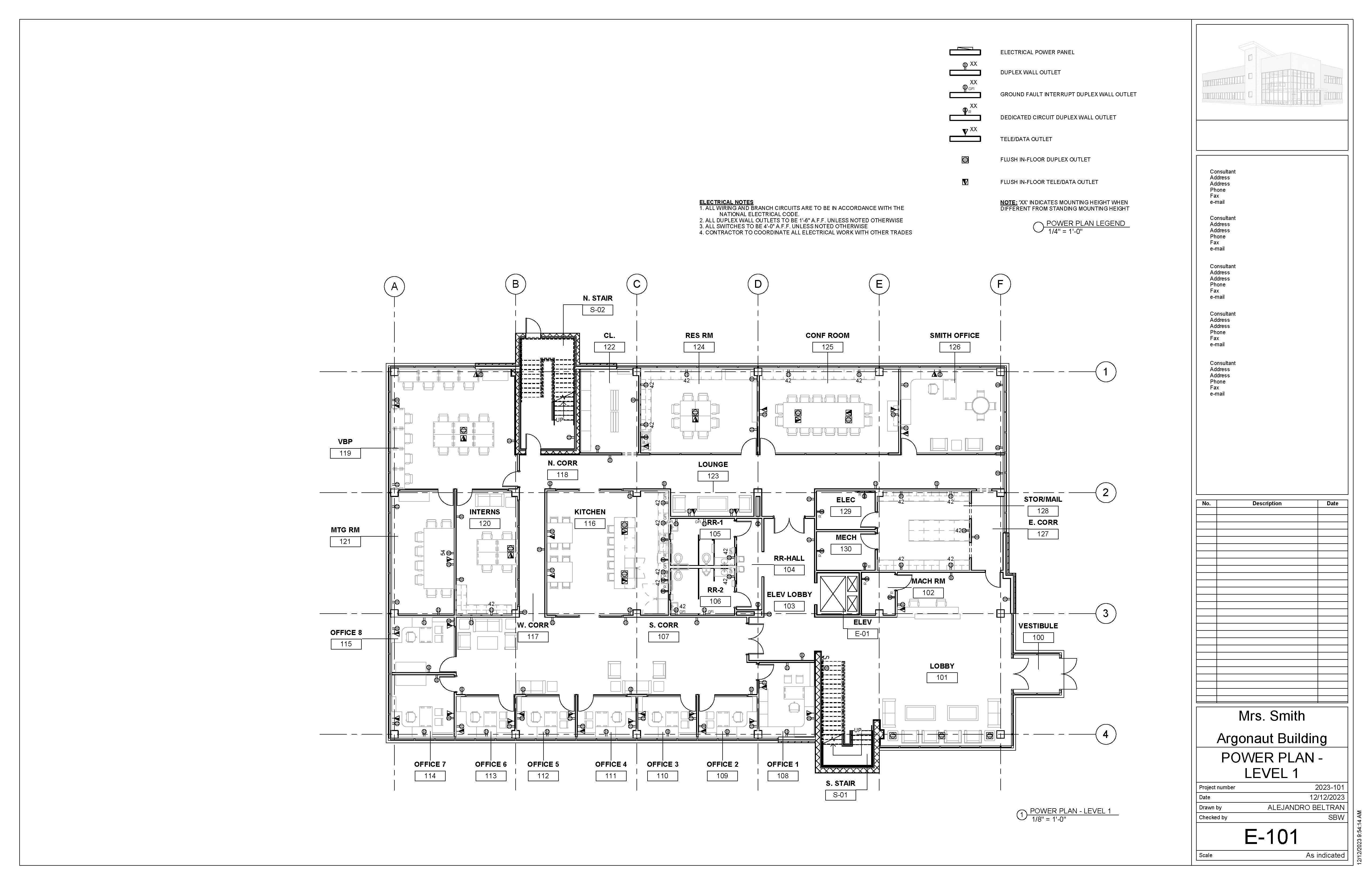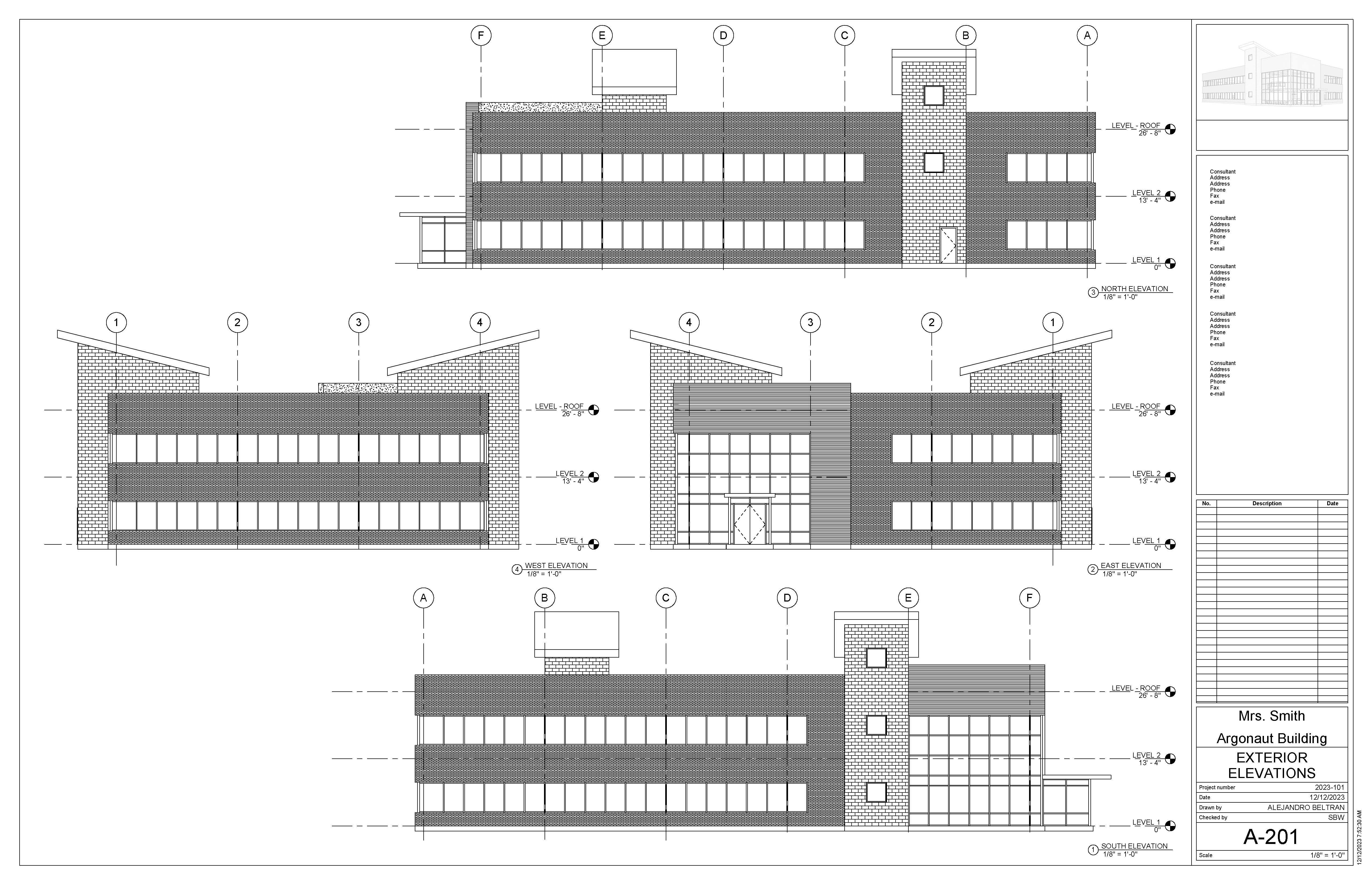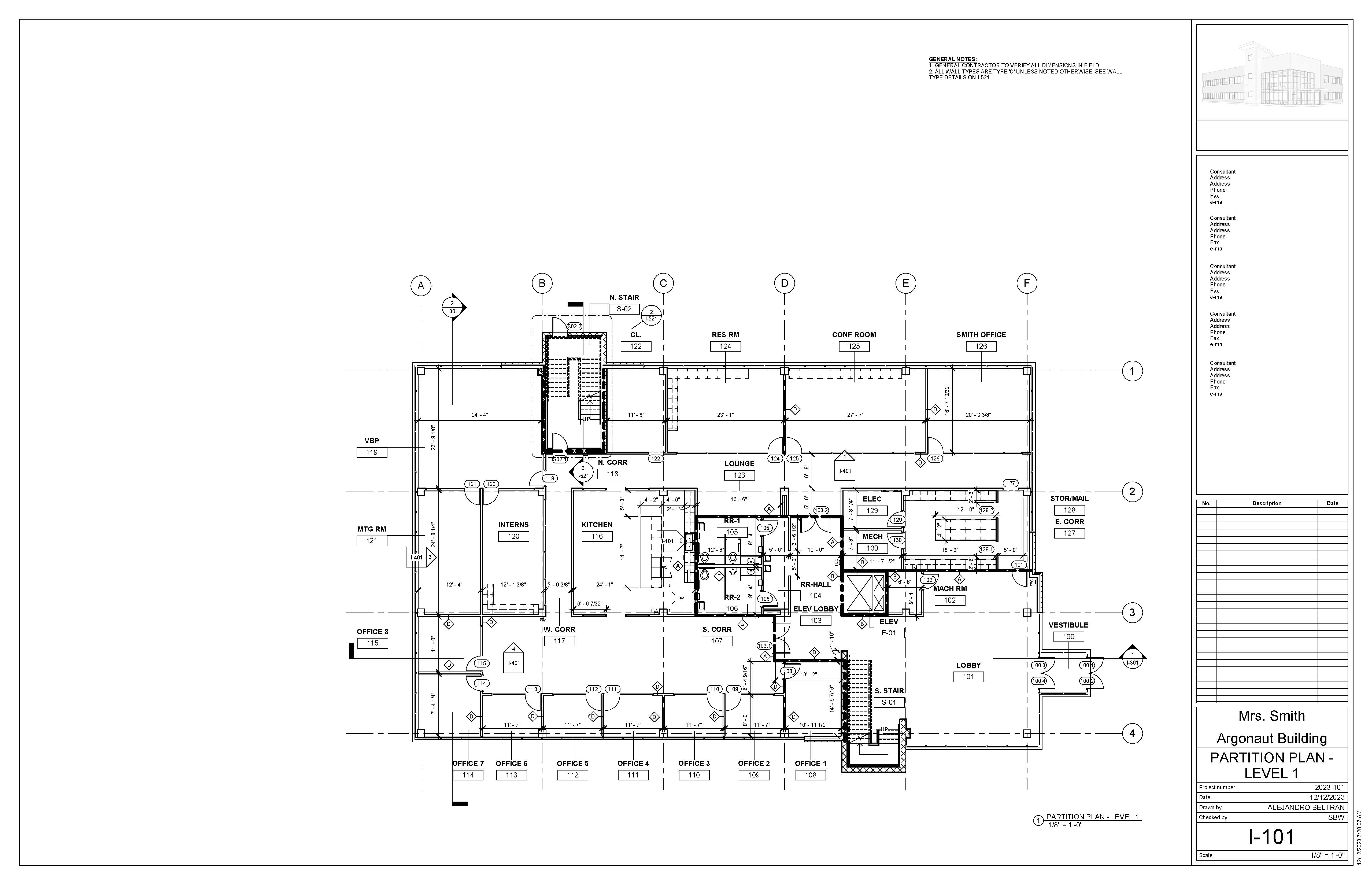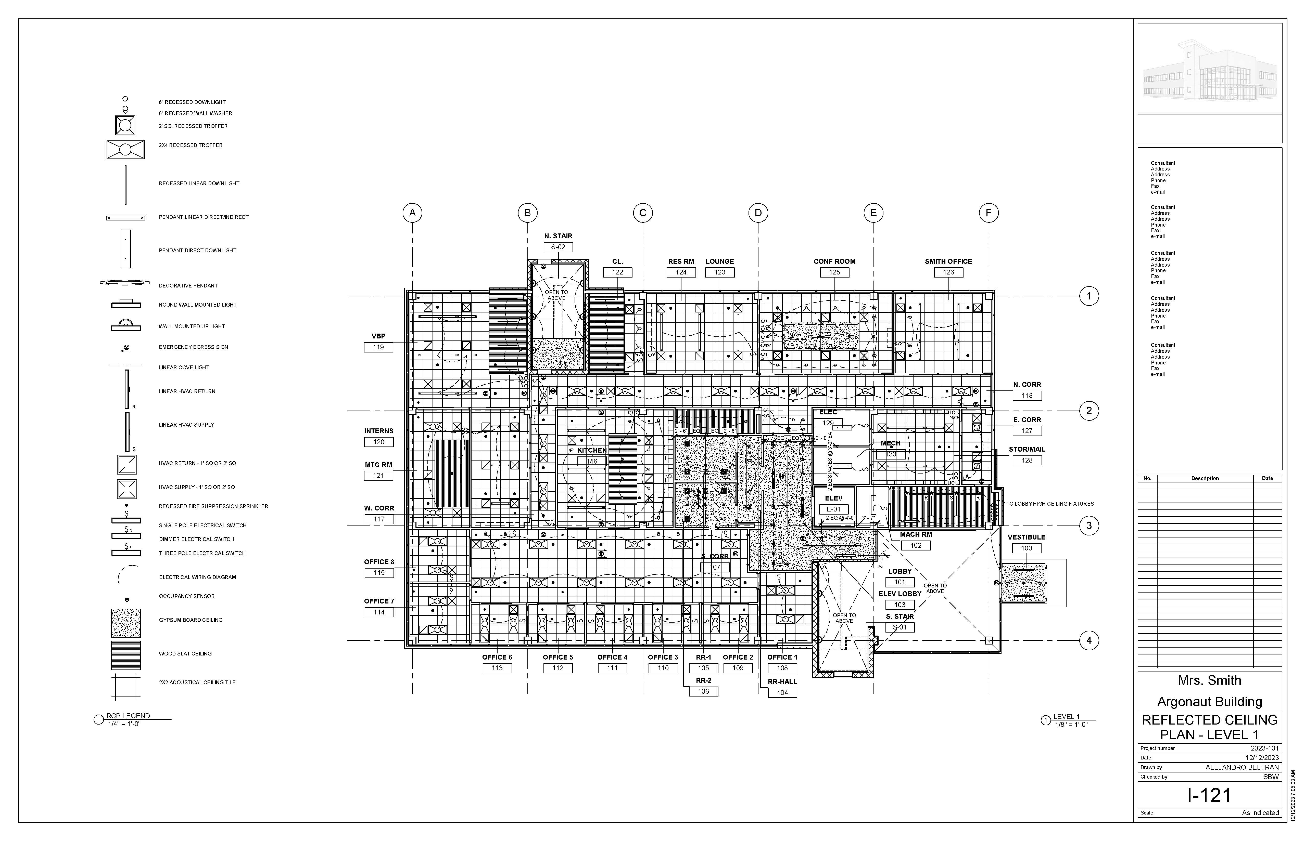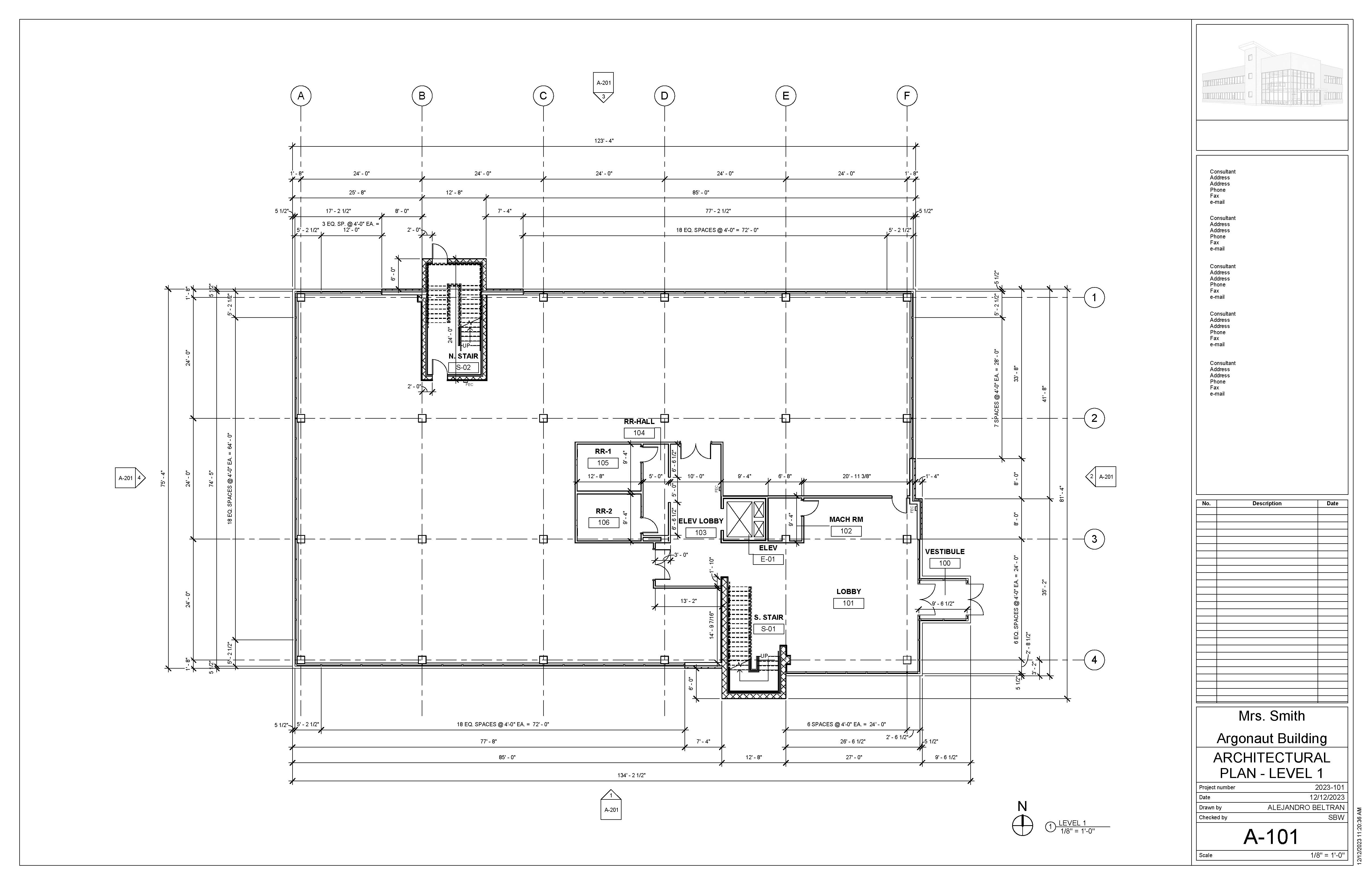 The Argonaut Building project is an exercise that develops students’ skills and command over construction documentation and building modeling. This roughly 17,000 sqft space is an interior build-out that features a large office space and shared lobby entrance on the first floor, with an additional tenant space on the second level. I was responsible for modeling the core & shell of the building, space planning required program elements for the office, as well as drafting a variety of technical plans.